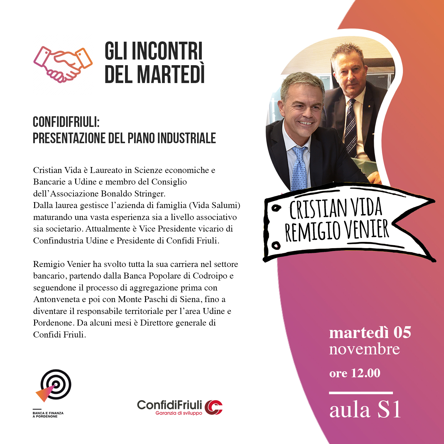 Relazionano: Cristian Vida e Remigio Venier corrispettivamente il Presidente e il Direttore Generale della ConfidiFriuli.