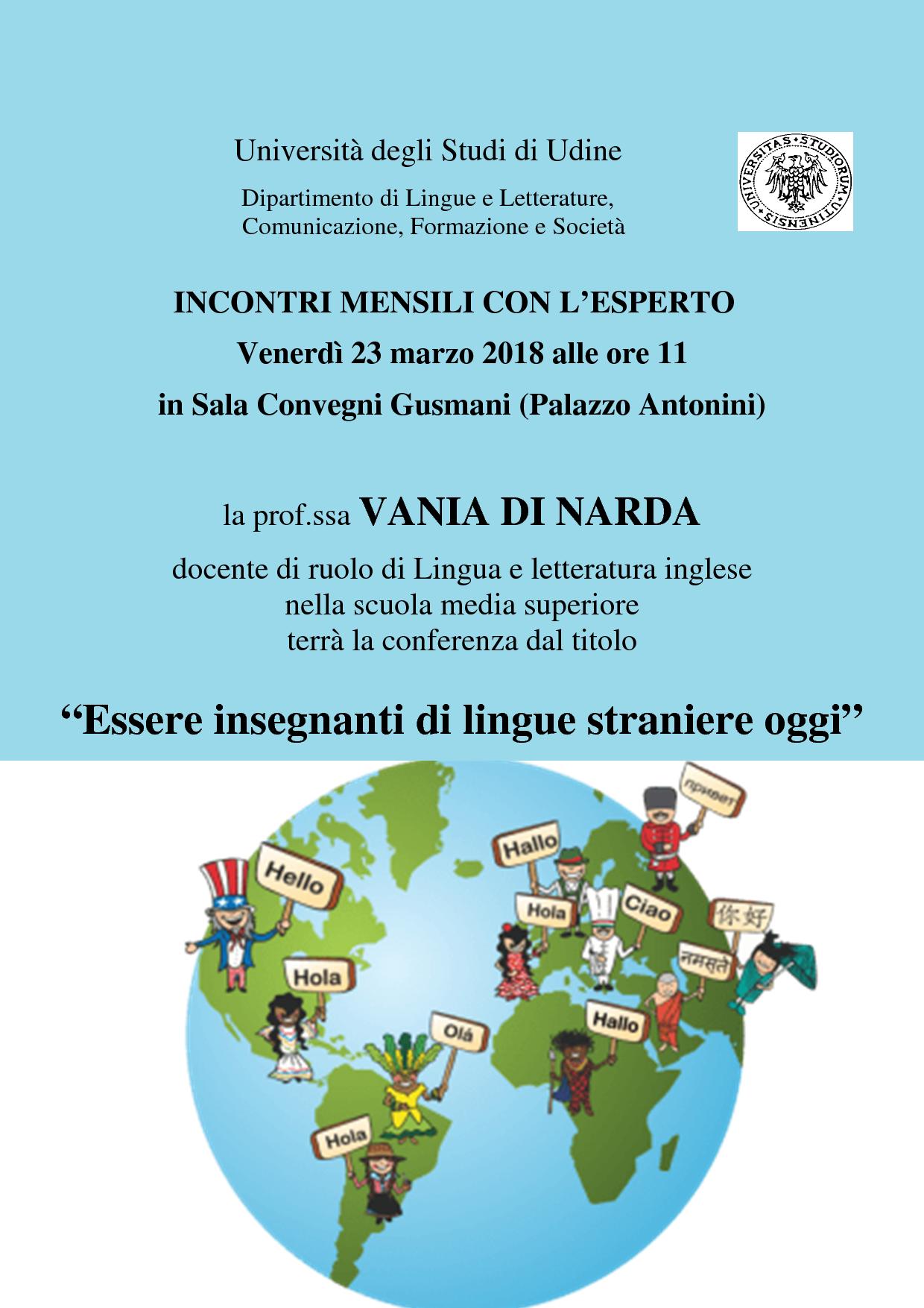 Incontro inserito nel ciclo di conferenze professionalizzanti a cadenza mensile, dal titolo "Incontri con l’esperto", offerto a tutti gli studenti dei corsi di studio triennale e magistrale di Lingue.