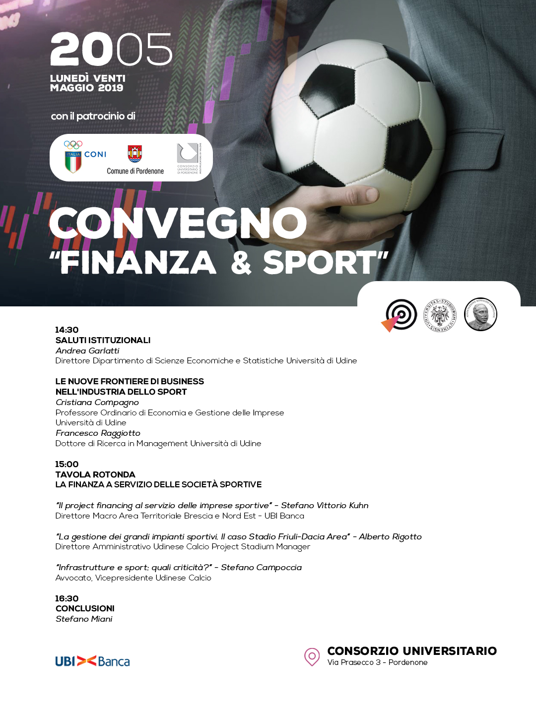 Convegno con l’intervento di: prof. Andrea Garlatti (Università di Udine), prof.ssa Cristiana Compagno (Università di Udine), dott. Francesco Raggiotto (Università di Udine), Stefano Vittorio Khun (UBI Banca), Alberto Rigotto (Pordenone Calcio) e Stefano Campoccia (Udinese Calcio).