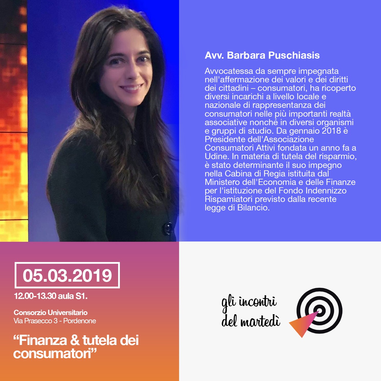 Relaziona: avv. Barbara Puschiasis, Presidente dell'Associazione consumatori attivi di Udine.