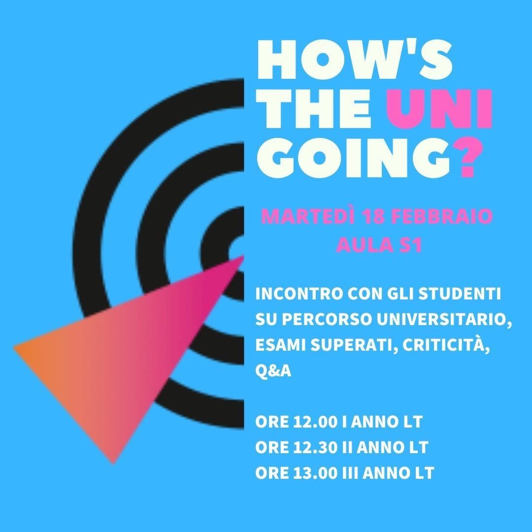 Incontro con gli studenti su percorso universitario, esami superati, criticità, Q&A.