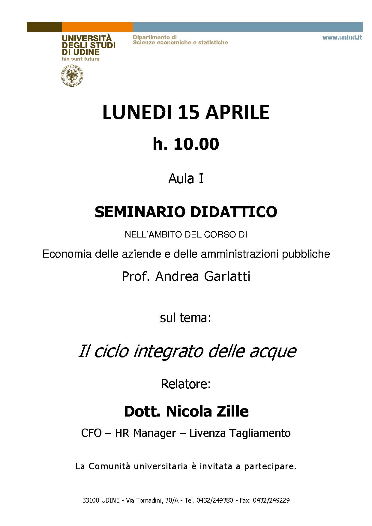 Seminario didattico nell’ambito del corso di Economia delle aziende e delle amministrazioni pubbliche.