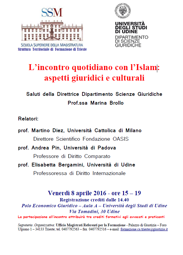 Seminario di divulgazione sugli aspetti culturali e giuridici legati alle interazioni e relazioni con persone musulmane.
