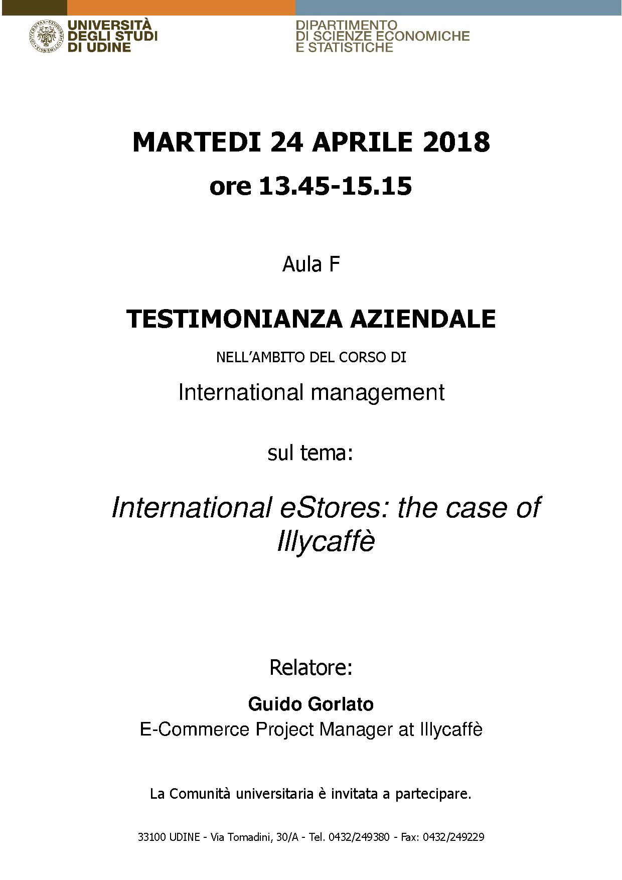 Testimonianza aziendale nell'ambito del corso di lnternational management.