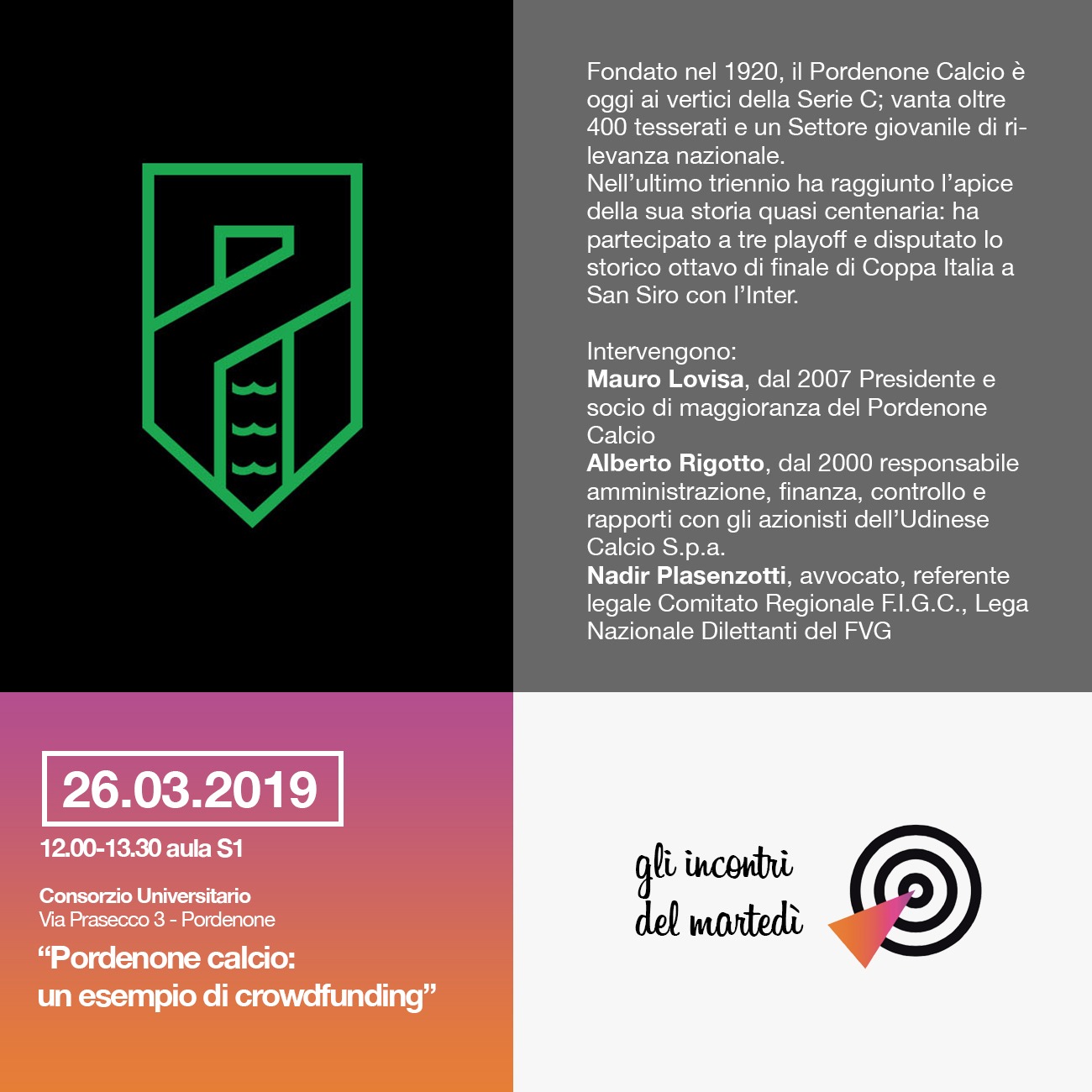 Intervengono: Mauro Lovisa, Presidente Pordenone Calcio; Alberto Rigotto, responsabile amministrazione, finanza, controllo e rapporti con azionisti dell'Udinese Calcio Spa e Nadir Plasenzotti, avvocato, referente legale Comitato Regionale FIGC, Lega nazionale dilettanti.