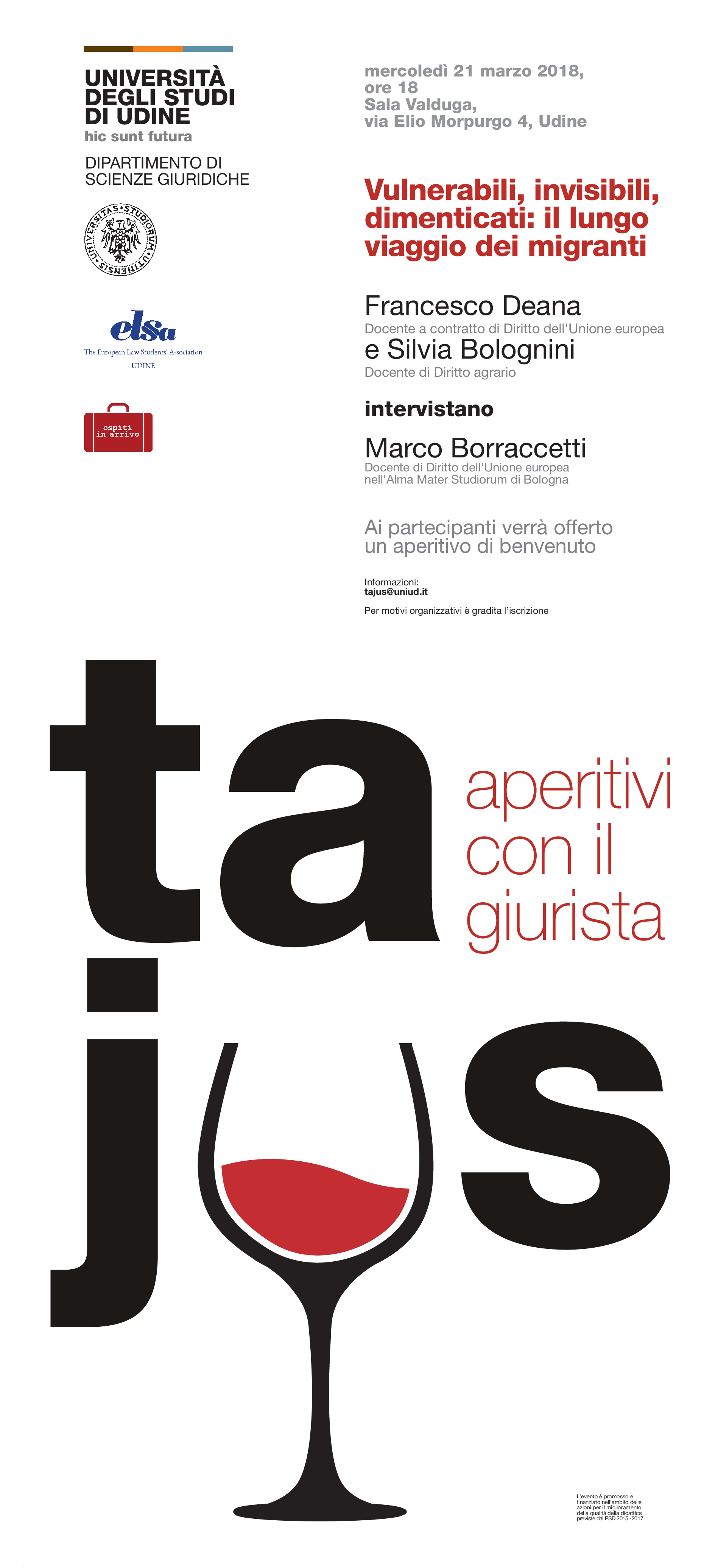 Tajus è un incontro fra Università e territorio con cadenza mensile che riprende la tradizione del taj friulano e la unisce allo jus, cioè diritto.
