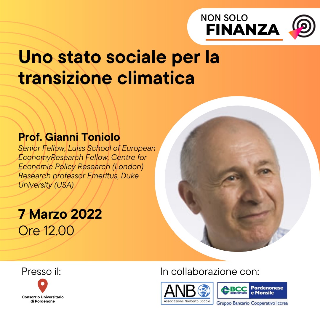 Interviene: prof. Giovanni Toniolo, Senior Fellow, LUISS School of European Economy Research Fellow, Center for Economic Policy Research (London), Research professor Emeritus Duke University (USA).