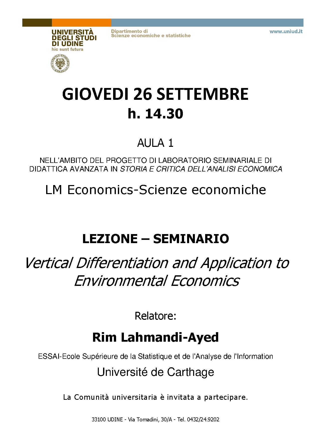 Lezione-seminario nell’ambito del progetto di Laboratorio seminariale di didattica avanzata in Storia e critica dell’analisi economica .