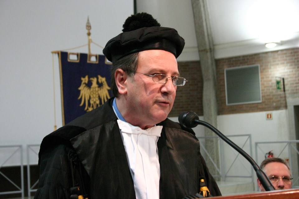Pierluigi Di Piazza durante la lectio alla cerimonia di conferimento della laurea honoris causa