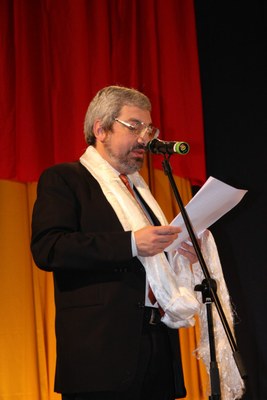 Il rettore Honsell con la sciarpa donatagli dal Dalai Lama