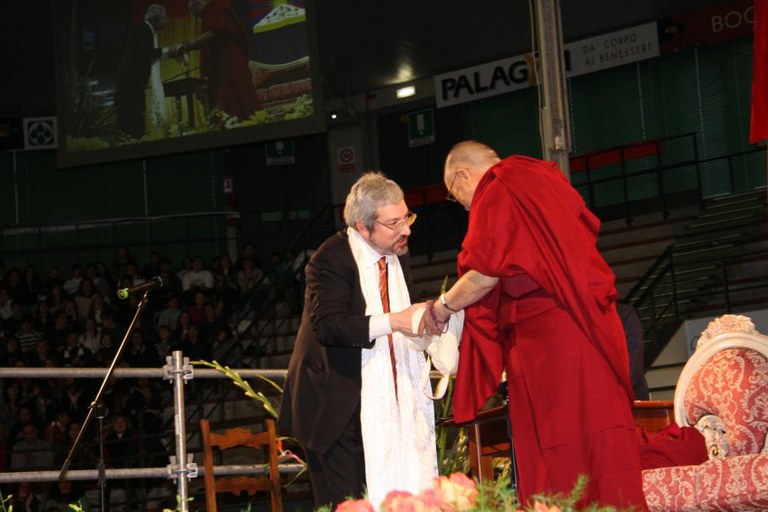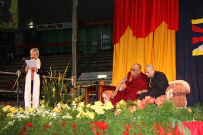Don Pierluigi Di Piazza, introducendo l’incontro, ha ribadito la rilevanza del messaggio universale testimoniato dal Dalai Lama, «una personalità di profonda sapienza di cuore e di mente. In un mondo di desertificazione interiore i giovani cercano un’umanità autentica. Dalle sue parole saremo sollecitati ad apprendere con serietà e impegno, evitando gli assoluti, senza dimenticare l’importanza di valori quali giustizia, pace, compassione e accoglienza, per prepararsi come persone umane a rendere più umano questo mondo».