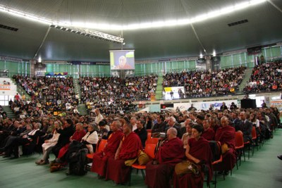 Palasport Carnera gremito per ascoltare le parole di Sua Santità Tenzin Gyatso