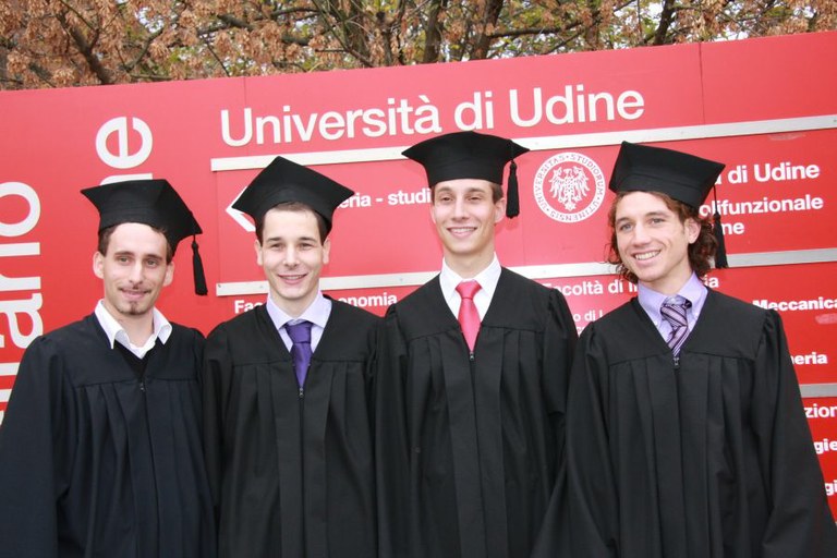 Andrea Antiga, Alessio Della Giustina, Davide Bonotto e Luca Santin, tutti trevigiani classe 1984, sono i primi laureati del corso di laurea specialistica in Ingegneria dell’innovazione industriale, attivata nel 2006 dall’università di Udine nel polo di Pordenone. I quattro neo–laureati hanno terminato nei tempi stabiliti il percorso specialistico biennale e sono stati proclamati dottori dal rettore dell’università di Udine Cristiana Compagno nel corso di una cerimonia che si è svolta nel Centro Polifunzionale di via Prasecco. In particolare Antiga e Bonotto hanno ottenuto il voto finale di 110 e lode.