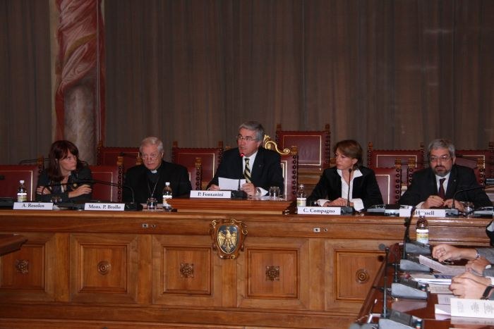 Da sinistra: l'assessore regionale Alessia Rosolen, l'arcivescovo di Udine Pietro Brollo, il presidente della Provincia di Udine Pietro Fontanini, il rettore dell'Ateneo di Udine Cristiana Compagno, il sindaco di Udine Furio Honsell