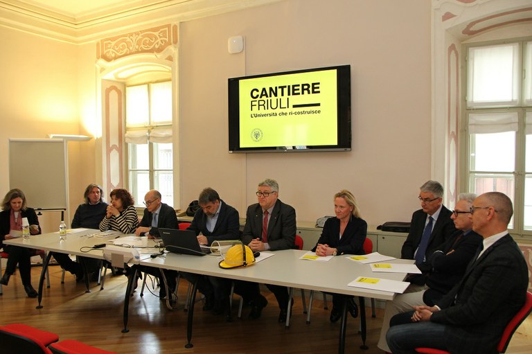 Erano presenti il rettore Alberto De Toni, i professori Mauro Pascolini, coordinatore del progetto e Maria Cristina Nicoli, delegata alla ricerca, Mario Pezzetta, presidente dell’Anci Fvg e tutti i docenti responsabili delle sezioni di cui si compone Cantiere Friuli.