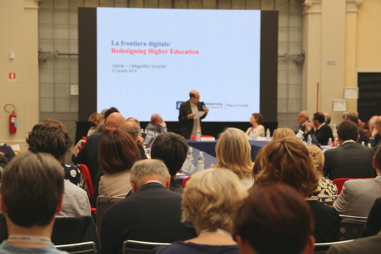 Si è aperta stamani a palazzo di Toppo Wassermann la due giorni di lavori dei “Magnifici Incontri Crui 2018” che vedono riuniti a Udine oltre 250 tra studiosi ed esperti provenienti da 140 tra università, istituzioni, centri di ricerca e organizzazioni pubbliche e private con l’obiettivo di arrivare alla definizione del primo piano Nazionale per l’Università Digitale che la Conferenza dei Rettori delle Università Italiane (Crui) consegnerà alla politica. Il documento sarà il punto di partenza per ripensare e aggiornare le politiche di digitalizzazione degli atenei. Nel tardo pomeriggio si è svolta la cerimonia di consegna del Premio Conoscenza Crui 2018, assegnato a Luciano Floridi, professore di Filosofia ed Etica dell’Informazione all’Università di Oxford (UK).
