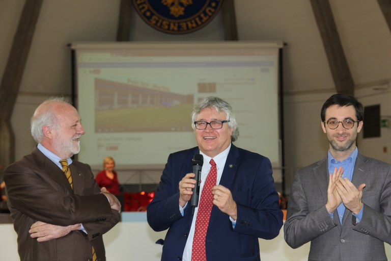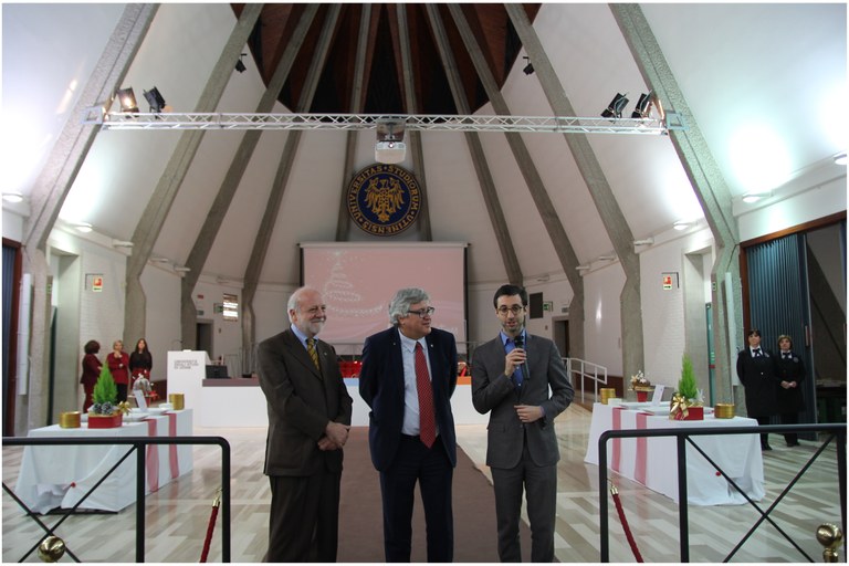 Mercoledì 16 dicembre si è svolto nell’aula magna di piazzale Kolbe il tradizionale incontro per lo scambio di auguri in occasione del Natale e delle festività di fine e inizio anno, alla presenza del rettore Alberto De Toni e del direttore generale Massimo Di Silverio, assieme all’amministrazione comunale rappresentata da Gabriele Giacomini, assessore all’innovazione e allo sviluppo economico.