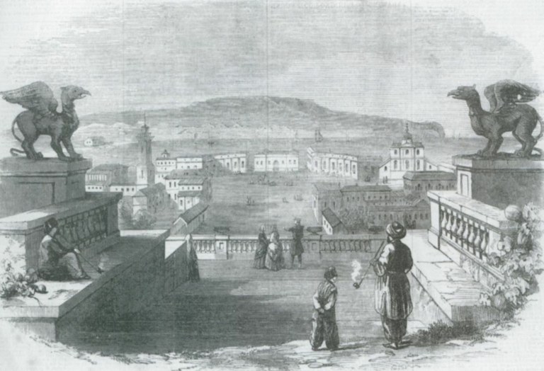 La scalinata dell'architetto piemontese Alessandro Digbi che dal monte Mitridate scende a Kerc (stampa del 1855)