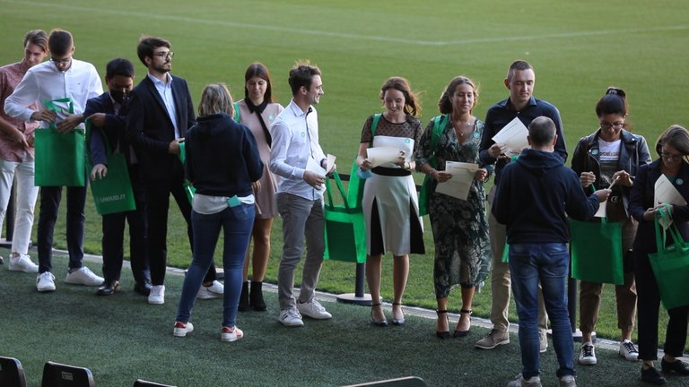 Un colpo d’occhio tanto inusuale quanto straordinario e suggestivo quello che ha regalato ieri La Dacia Arena gremita da un migliaio di neo laureati dell’Ateneo per il Graduation Day, ovvero la giornata dei laureati, un momento speciale con il quale si celebra la chiusura del percorso di studi e si festeggia il conseguimento del titolo.