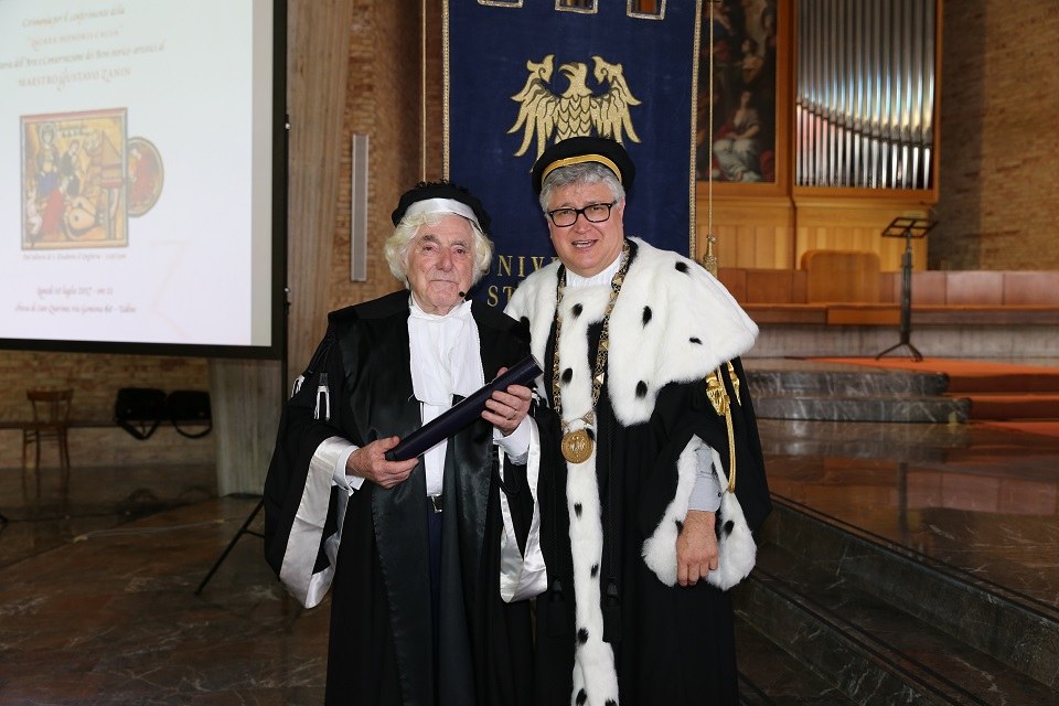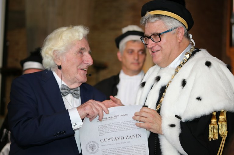 «Per i suoi meriti di profondo conoscitore della tecnica organaria classica, di innovatore alla continua ricerca di soluzioni tecniche originali, di esempio di appassionato professionista fortemente legato alla tradizione che ha contribuito con impegno alla valorizzazione del territorio e del patrimonio storico-culturale del Friuli». Con questa motivazione l’Università di Udine ha conferito oggi la laurea magistrale honoris causa in Storia dell’arte e della Conservazione dei beni storico-artistici a Gustavo Zanin, maestro organaro di Codroipo, classe 1930, che ha dedicato tutta la sua vita a questa arte, come artigiano, costruttore, restauratore e artista. Nella sua carriera Zanin ha realizzato più di 400 organi in tutto il mondo, dedicandosi anche al restauro e alla conservazione di quelli esistenti, tra cui quelli recuperati dopo il terremoto del Friuli del 1976.