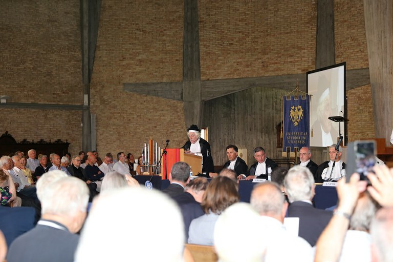 Chiesa gremita alla cerimonia di laurea