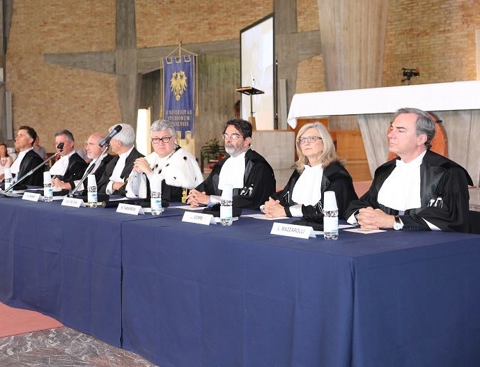 Dopo la laudatio, il rettore De Toni, lette le motivazioni, ha proclamato dottore honoris causa Gustavo Zanin che, indossata toga e tocco, ha tenuto la lectio magistralis intitolata “Il suono dell’organo”.