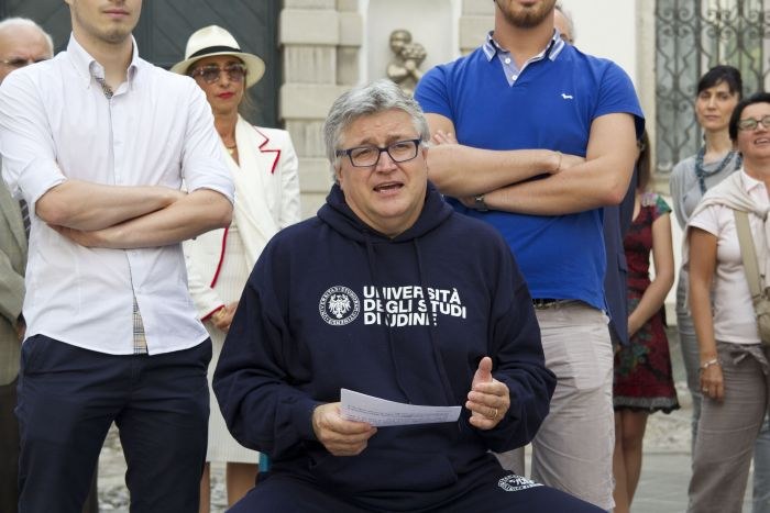 “Doccia fredda benefica” per il rettore dell’Università di Udine Alberto Felice De Toni che questo pomeriggio, nel cortile della sede del rettorato dell’ateneo a palazzo Florio, ha dato seguito alla catena dell’“ice bucket challenge” (#icebucketchallenge), l’ormai nota campagna di raccolta fondi per la ricerca sulla sclerosi laterale amiotrofica (Sla), promossa dall’associazione americana Als Association e rilanciata in Italia da Aisla. De Toni ha partecipato all’iniziativa - che prevede che i partecipanti dopo la donazione si versino una secchiata d’acqua gelata in testa immortalando il momento e facendolo circolare sui social network – in seguito alla nomina ricevuta dal rettore dell’ateneo giuliano Murizio Fermeglia. Il video dell’ice bucket challenge del rettore De Toni è disponibile all’indirizzo http://youtu.be/5VcNcj6jgLg.