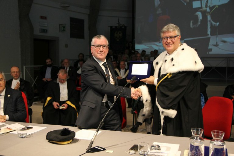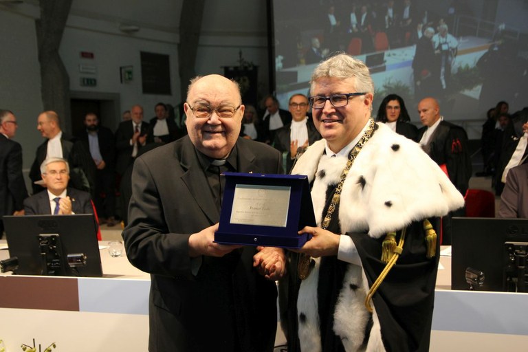 Consegna della targa dell'Ateneo al professore emerito Franco Frilli