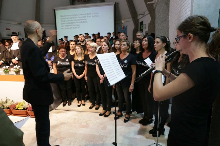 Il tradizionale canto del Gaudeamus, a cura del coro “Gilberto Pressacco” dell’Università di Udine, ha chiuso la cerimonia.