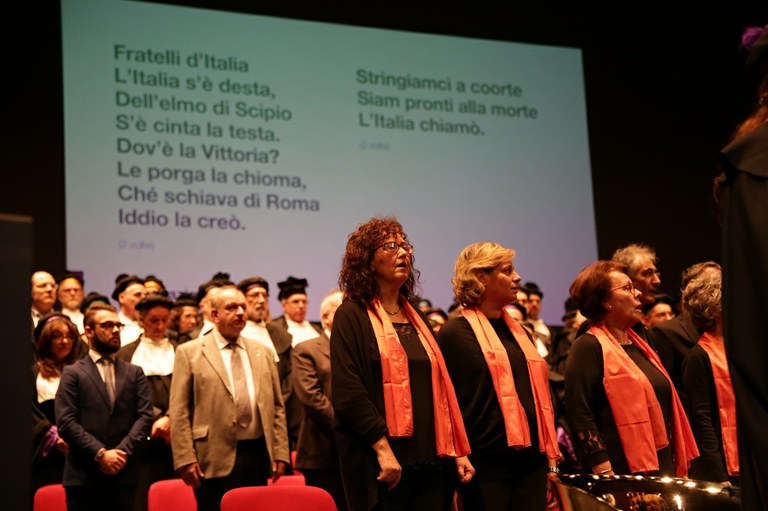 Il coro dell'Uniud Pressacco canta l'Inno d'Italia