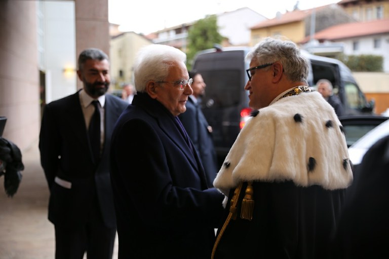 Il Rettore De Toni saluta il Presidente della Repubblica Mattarella
