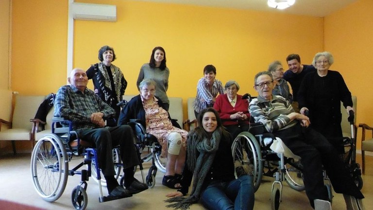 Veronica Battigello e Martina Geatti con un gruppo di anziani a Poitiers