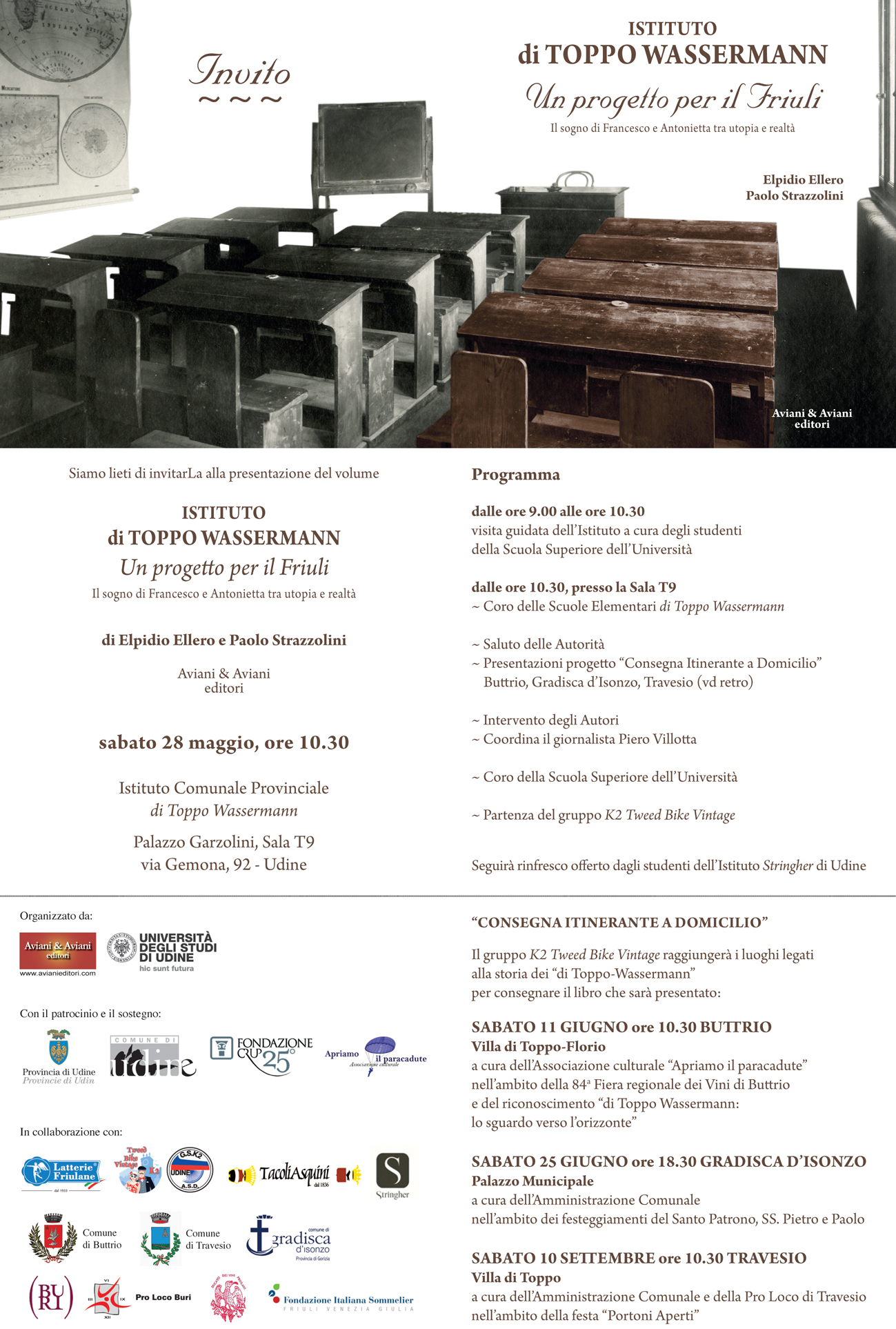 Questa storia, intrecciata con le vicende sociali, politiche e militari di Udine e del Friuli, viene raccontata nel volume “Istituto di Toppo Wassermann. Un progetto per il Friuli” (Aviani&Aviani editori), opera di Elpidio Ellero e Paolo Strazzolini, che sarà presentato sabato 28 maggio, alle 10.30, nell’aula T9 di palazzo Garzolini di Toppo Wassermann a Udine (via Gemona 92).