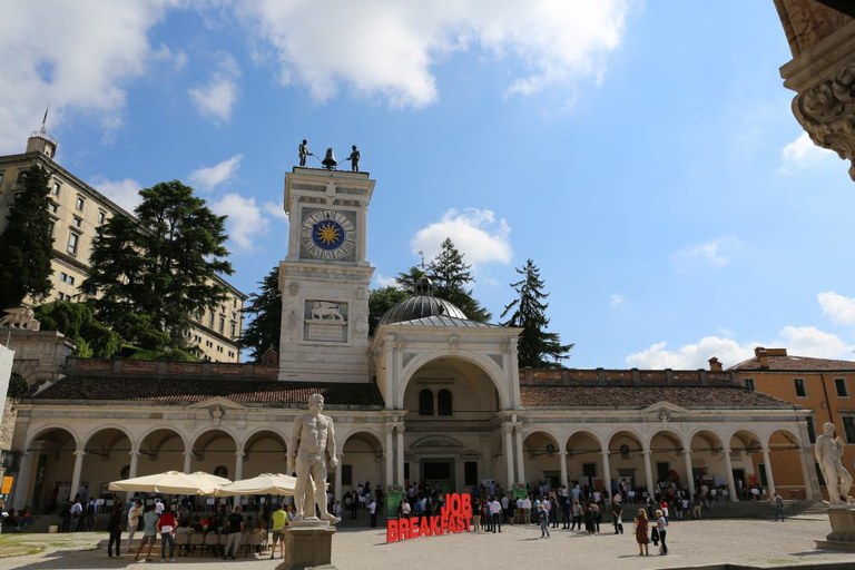 Nella spledida cornice di piazza della Libertà è incorso stamani il Job Breakfast 2017, il Career Day dell’Università di Udine, annuale appuntamento che offre a laureati e studenti di tutti i corsi di laurea dell’Ateneo friulano l’opportunità di consegnare il proprio curriculum vitae ai referenti delle aziende partecipanti e sostenere colloqui di selezione per aggiudicarsi una delle decine di posizioni lavorative offerte. Dopo la colazione di lavoro in Loggia del Lionello, sono iniziati, nella Loggia di San Giovanni, i colloqui di selezione.
