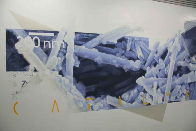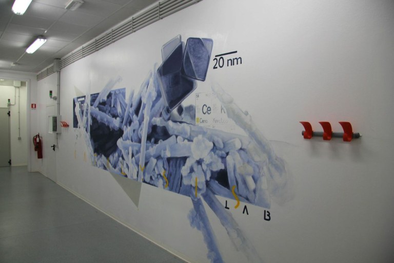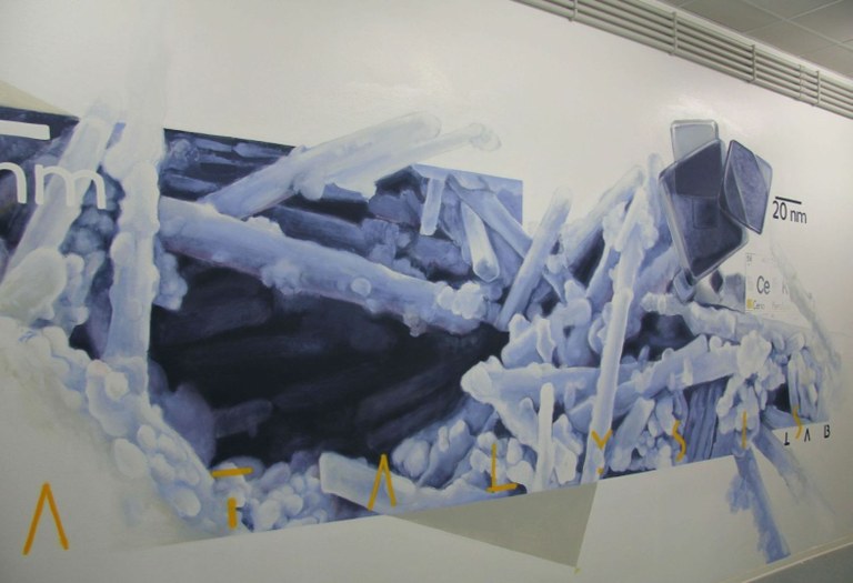 La scienza vista e riprodotta dagli street artist. È l’esperimento artistico-scientifico realizzato nei laboratori di chimica del Dipartimento di chimica, fisica e ambiente dell’Università di Udine grazie a un murale lungo 5 metri e alto 3, opera di Francesco Patat, dell’associazione culturale “Bravi ragazzi” di Gemona del Friuli. Si tratta della riproduzione pittorica di un collage di fotografie realizzate al microscopio elettronico ad alta risoluzione raffiguranti cristalli di ossido di cerio e zirconio, unito a elementi grafici e alcuni dettagli della tavola periodica degli elementi. Nell’opera sono stati inseriti alcuni dettagli in rilievo contenti i pigmenti degli ossidi di cerio e zirconio, elemento ludico che gioca sull'analogia tra una cartella colore e la tavola periodica. Il cerio è un elemento appartenente alle terre rare utilizzato come catalizzatore, tra gli altri, negli esperimenti del team del laboratorio di Catalisi dell’ateneo friulano. Il murale si trova nel corridoio d’accesso dei laboratori, nel complesso dell’ex Cotonificio udinese.