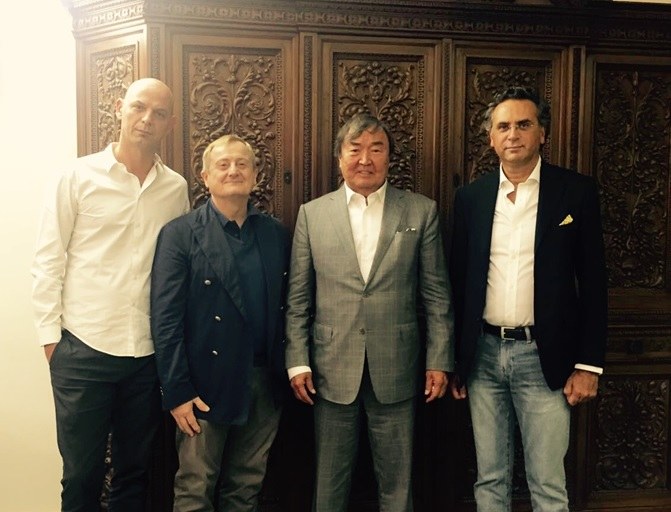 Da sinistra Dario Lorenzi, Andrea Risaliti, l'ambasciatore del Kazakistan a Roma, Olzhas Suleymenov, Giovanni Terrosu