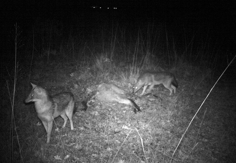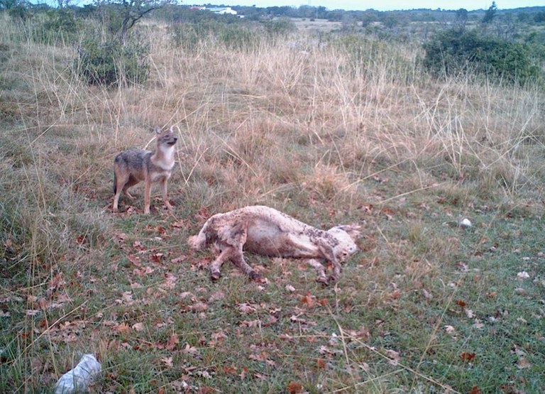 Predazione di sciacallo dorato su ovino ripresa tramite fototrappola (Fonte: Bioagriturismo Parco Rurale Alture di Polazzo)