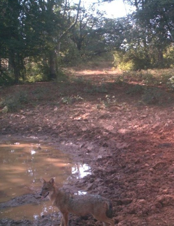Sciacallo dorato presso lo stagno carsico del Bioagriturismo Parco Rurale Alture di Polazzo (Fonte: Bioagriturismo Parco Rurale Alture di Polazzo))