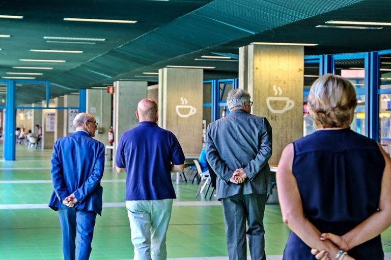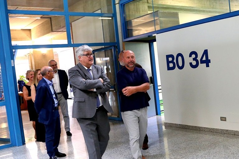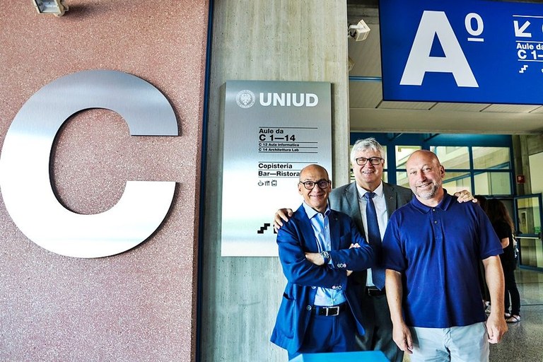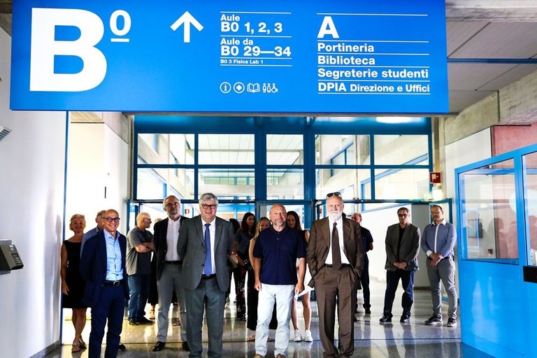 Il rettore Alberto De Toni con il rettore eletto Roberto Pinton e il direttore generale Massimo Di Silverio hanno fatto visita oggi al polo scientifico dei Rizzi, dove sono stati completati i lavori per una nuova segnaletica di orientamento che interessa il piano terra e il piano seminterrato delle grandi aule, ovvero le zone con maggiore affluenza di pubblico.