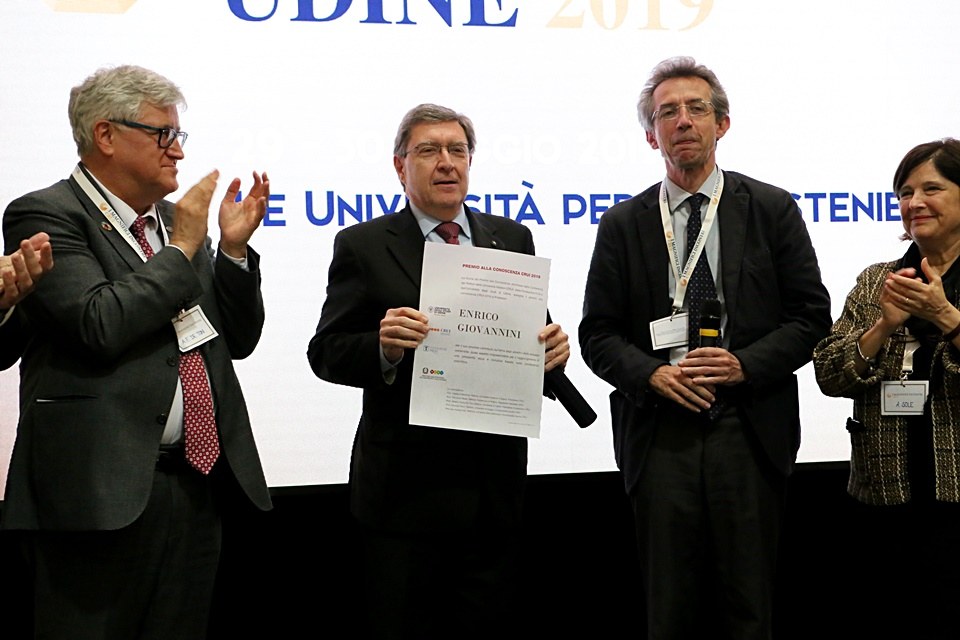 Oggi solenne e partecipata consegna del Premio alla Conoscenza CRUI 2019, nell'ambito dei Magnifici Incontri CRUI in corso a Udine fino a domani, a Enrico Giovannini, già Ministro del Lavoro e delle Politiche Sociali, Presidente ISTAT e Chief Statistician dell’OCSE.