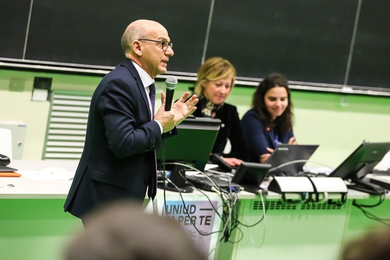 Lo Student Day è stato inaugurato dal rettore Roberto Pinton, che ha presentato le opportunità offerte dall’Università di Udine, ed è stato salutato con 'fuori programma' dell'area servizi agli studenti: un simpatico video con una torta per fare “al Magnifico magnifici auguri di buon compleanno”. Tra gli applausi della platea gremita, il rettore ha ringraziato e ha sottolineato la sua soddisfazione nel dare il via allo Student Day 2020. «E' la prima volta che inauguro questo splendida manifestazione, che accoglie tutti questi studenti desiderosi di venire a capire un po' meglio quale possa essere il loro futuro in relazione all'offerta formativa del nostro ateneo. E' una giornata importante, un momento festa e di orgoglio – ha proseguito Pinton –, perché possiamo dispiegare qui tutto l'arsenale formativo di cui disponiamo e tutto ciò che comporta intraprendere una vita accademica. Vogliamo che l'università di Udine sia vissuta, e non solo 'studiata'– ha suggerito il rettore – perché non vogliamo pensare al nuovo iscritto solo come a un numero di matricola, ma vogliamo che gli studenti entrino a pieno titolo in una comunità e si sentano in partnership con chi li aiuta a costruire almeno le basi per il loro futuro».