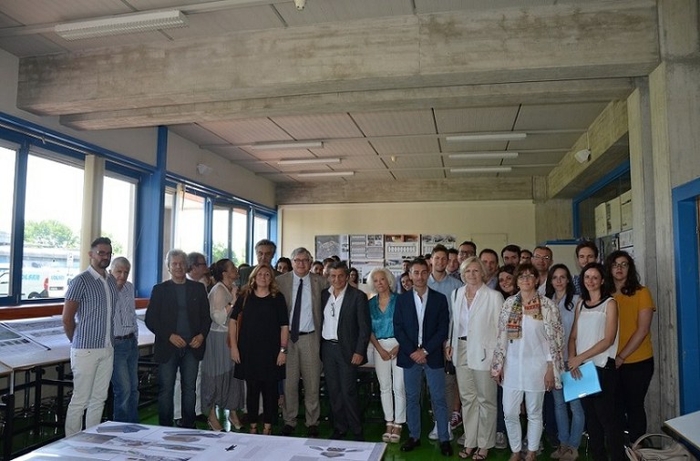 Gli studenti di architettura con i docenti e gli ospiti istituzionali