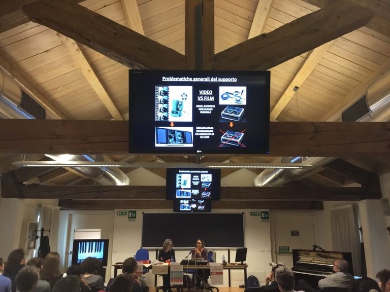 Per quanto riguarda il protocollo di intervento si suddivide in alcune fasi: individuazione dell’archivio, la posizione, la progettazione e il tipo di materiali. Segue la progettazione dell’intervento definendo le finalità e le domande tecniche. Per esempio, il periodo del materiale, gli strumenti per leggerli, come sono stati conservati, chi sono gli artisti, gli aspetti tecnici e storici arrivando alla ricostruzione d’archivio. Un ulteriore fase è la raccolta di tutti questi dati per avere uno storico e verificarli quando si ha l’accesso al file digitale. Da non dimenticare è la fase della pulizia manuale che potrebbe presentare alcune problematiche dei supporti andado a compromettere il contenuto. Infine, una fase di acquisizione digitale in cui vengono fatte delle copie conservative.