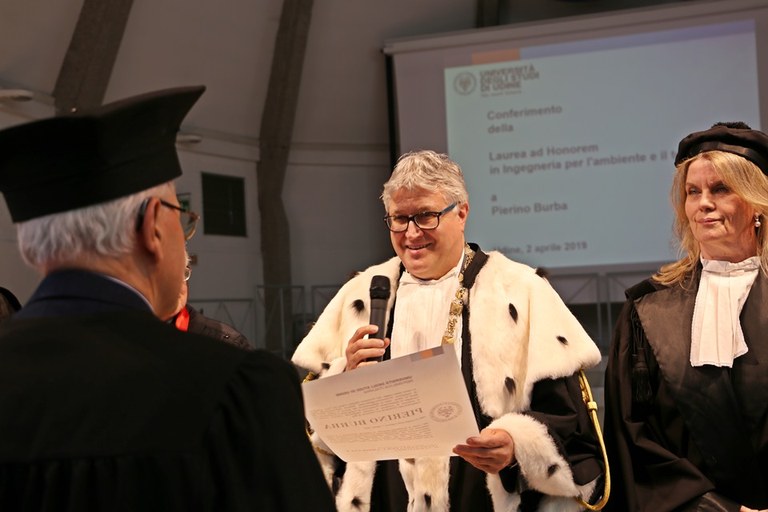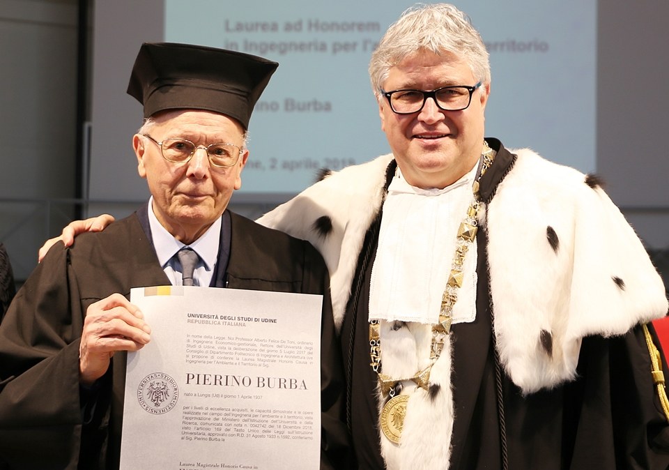 Pierino Burba laureato ad honorem Ingegnere per l'Ambiente e il Territorio dall'ateneo friulano