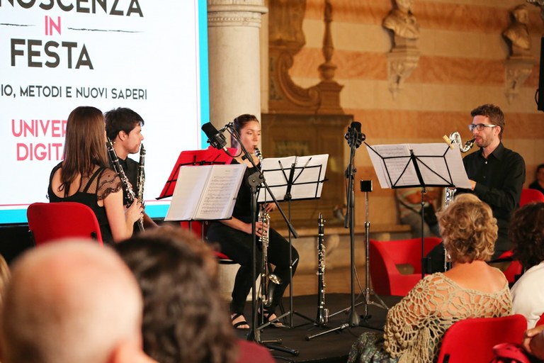 In seguito, l’applaudito concerto del coro dell’Università di Udine “G. Pressacco” e del Conservatorio statale di musica “J. Tomadini”, con la cantante jazz Barbara Errico. Un concerto evento in tre atti che ha visto sul palco il Coro dell’Università diretto dal prof. Fabio Alessi, con un programma che ha spaziato dalle composizioni più classiche fino al quelle legate alla tradizione locale e internazionale. Assieme al Coro, il Conservatorio ha proposto un repertorio moderno con un quartetto di clarinetti sotto la direzione del Maestro Federico Lovato. Barbara Errico, pluripremiata cantante jazz già vincitrice dell’Italian Jazz Award 2011 e nominata per la Targa Tenco 2014, ha presentato il suo percorso “I classici del jazz: da George Gershwin a Cole Porter”. Una serata unica di musica, canto, voce ha aperto al meglio Conoscenza in festa, il festival della conoscenza organizzato nel capoluogo friulano dall’Università di Udine e dalla Conferenza dei rettori delle Università italiane (Crui) dal 27 al 30 giugno.