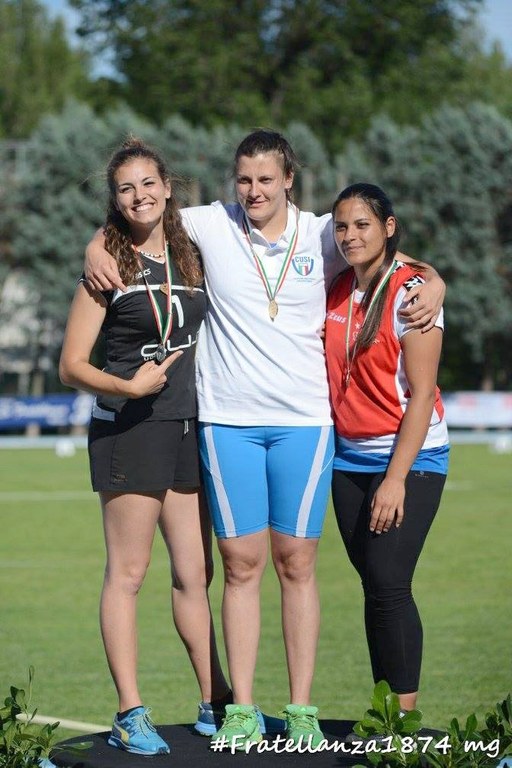 A metà settimana è anche la volta del Tiro a Segno e anche in questo caso il podio si colora di bianconero: a conquistare la medaglia di bronzo è Eleonora Mazzocoli, nella Pistola 10 metri. L’atleta friulana nel girone finale deve cedere a Claudia Eleonora Mazzocoli, medaglia di bronzo (foto repertorio) Giada Andreutti, a sinistra, medaglia d’argento Serranò (CUS Roma) e Ilenia Marconi (CUS Tor Vergata). Nella stessa specialità Jasmine Copetti, dopo aver conquistato anche lei l’accesso alla finale, si è fermata al 7° posto. Nell’ultimo weekend dei CNU programma ancora ricco di gare, che sorride ai colori del CUS Udine: è il momento dell’Atletica Leggera con il suo ricchissimo programma, e il timbro dell’ateneo udinese non si fa attendere! Nonostante il venerdì 17, le soddisfazioni non mancano: nel Disco femminile Giada Andreutti, con la misura di 53.74 metri, conquista la medaglia d’argento (bis dopo quella dello scorso anno a Salsomaggiore) dietro a Natalina Capoferri del CUS Brescia e davanti a Maria Antonietta Basile del CUS Napoli; nei 100 metri maschili, invece, Alessandro Iurig arriva sul terzo gradino del podio, con il tempo di 10.81 a 6 centesimi da Marco Gianantoni del CUS Bologna e a soli 2 centesimi da Luca Antonio Cassano del CUS Bari. Lo stesso Alessandro Iurig ha poi concluso al 5° posto la gara dei 200 metri il giorno successivo, col tempo di 21.93.