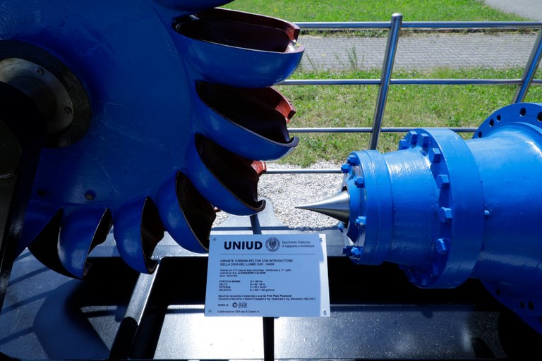 È il terzo esemplare di archeologia industriale che va ad arricchire la “collezione” di turbine in mostra all’esterno del polo scientifico dell’ateneo friulano. È la seconda del tipo Pelton, mentre l’altra è un gruppo turbina Francis-alternatore. Tutte e tre provengono da centrali idroelettriche del Friuli Venezia Giulia.