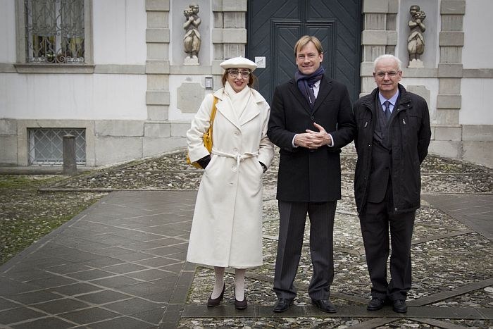 Doug Trappett con Antonella Riem Natale e Angelo Vianello a palazzo Florio