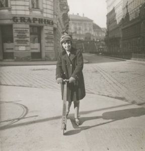 Ilse con il monopattino (foto: lascito di Ilse Aichinger, DLA)