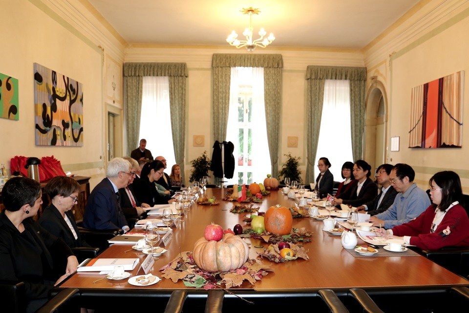 «All’Università di Udine la Cina è di casa da molto tempo: contiamo 168 studenti cinesi iscritti ai nostri corsi, da sempre abbiamo fatto studi e ricerche con la Cina, e dieci anni fa ho personalmente guidato un gruppo di ricerca che ha sviluppato uno studio sugli interscambi tra imprese europee e cinesi. Inoltre, abbiamo attivato corsi di lingua, cultura e storia cinesi, e oggi ospitiamo questa delegazione perché se Venezia ha Marco Polo, noi abbiamo il Beato Odorico. Udine è una città molto interessata all’interscambio con la Cina e siamo vicinissimi, vedi Trieste, alla nuova via della Seta, dunque vogliamo giocare un ruolo di primo piano in questo che è sicuramente un rapporto fecondo, perché il futuro è a Oriente».